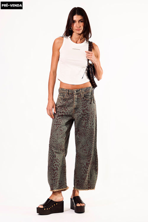 CALÇA MARIA FEMININA BARREL ANIMAL PRINT JEANS