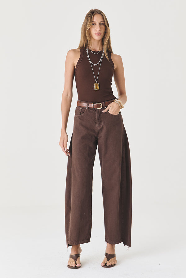 CALÇA MARIA FEMININA BARREL SARJA MARROM