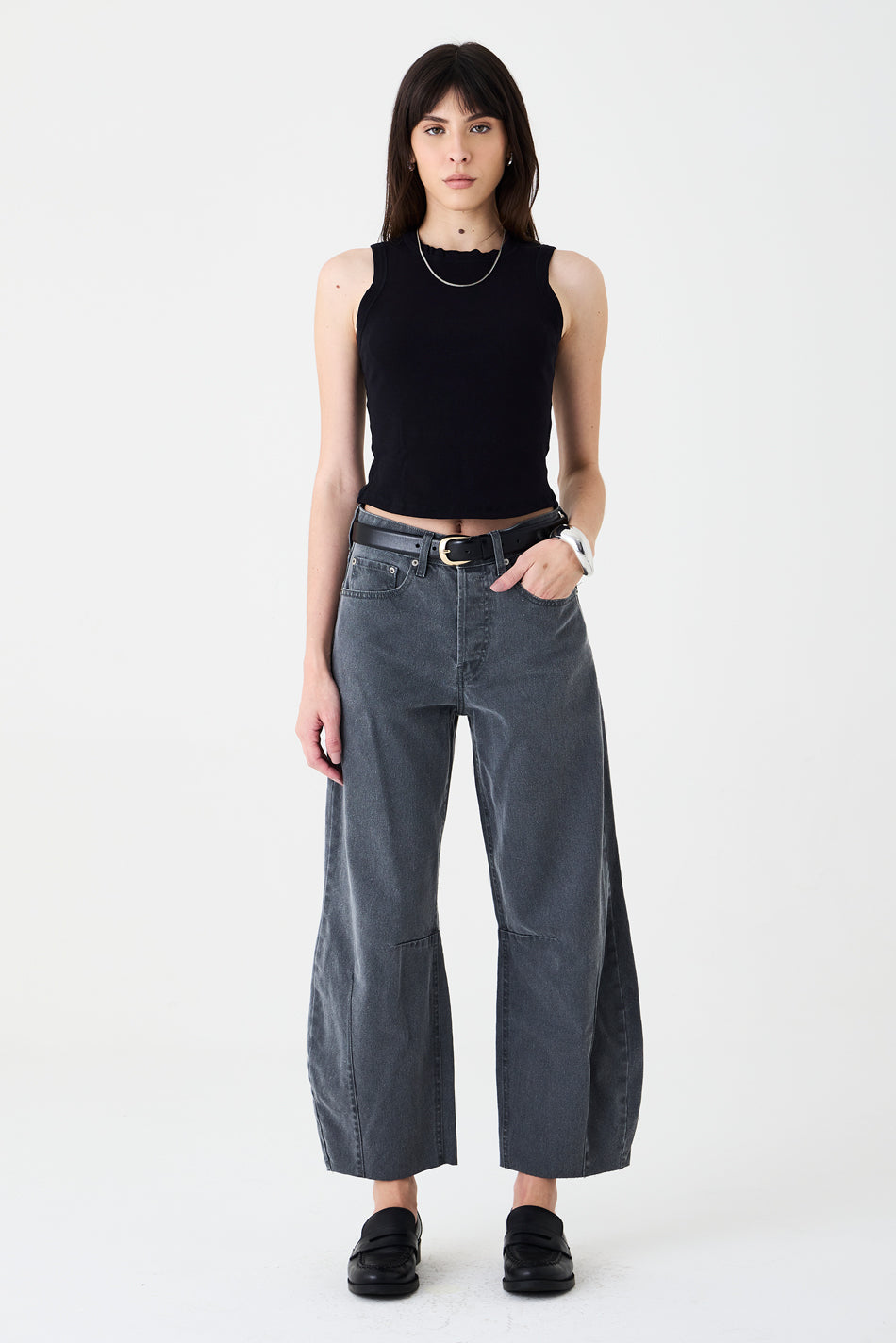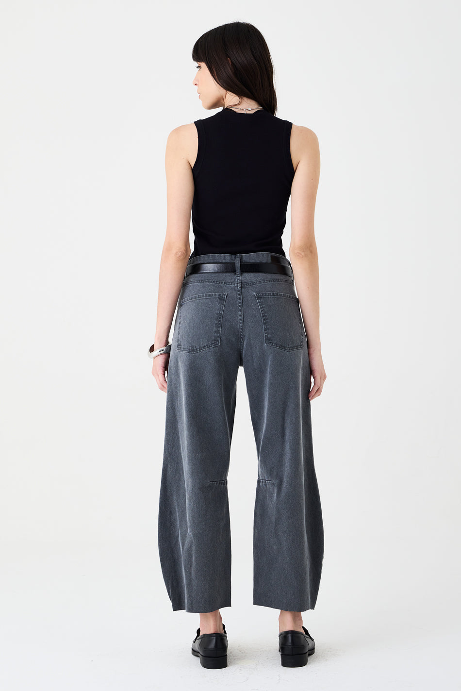 CALÇA MARIA FEMININA BARREL SARJA GRAFITE