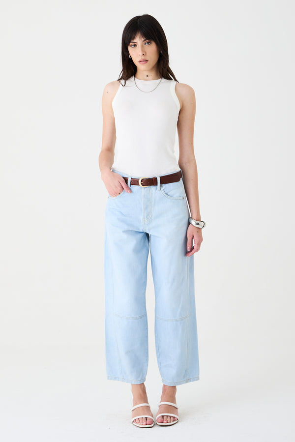 CALÇA ALINE FEMININA BARREL RECORTES JEANS CLARO DIRTY
