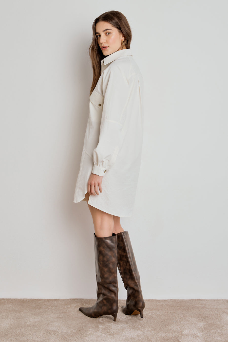 Chemise Feminina Manga Longa Recortes - Off White – Sofisticação Atemporal com Caimento Elegante