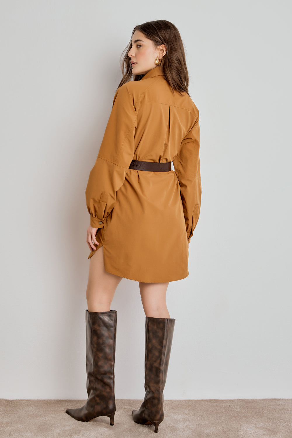 Chemise Feminina Manga Longa Recortes - Caramelo – Elegância Natural com Caimento Sofisticado