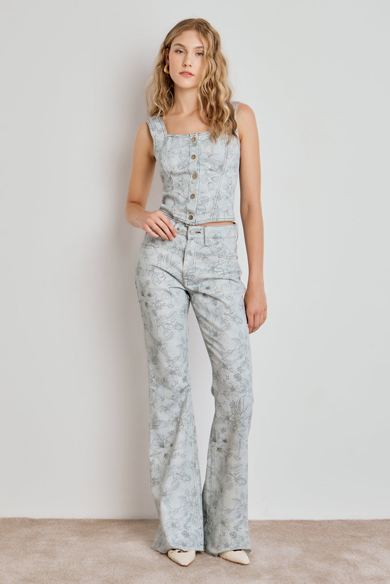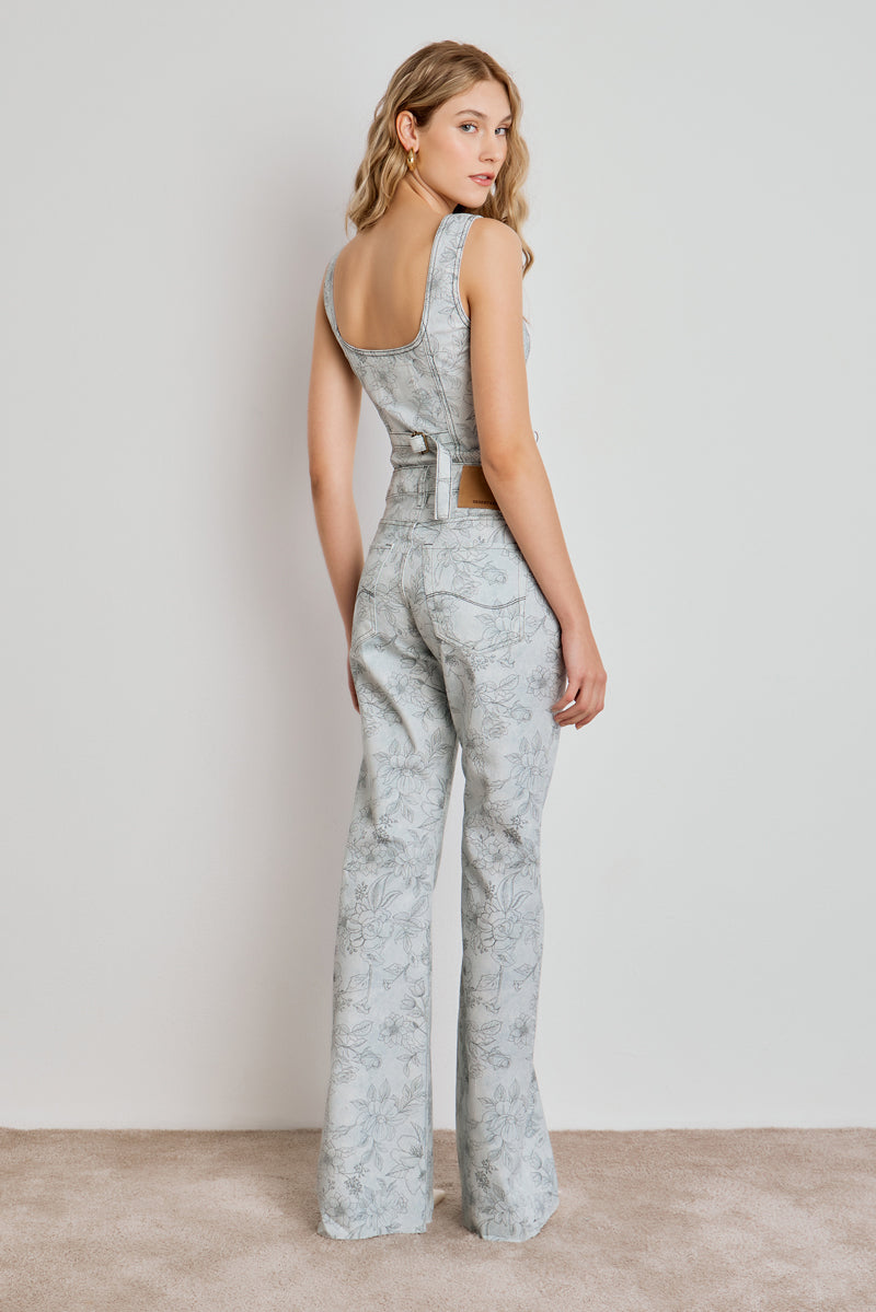 Corpete Feminino Alças Estampado Sarja - Flower Sketch: Estilo e Conforto em Cada Detalhe
