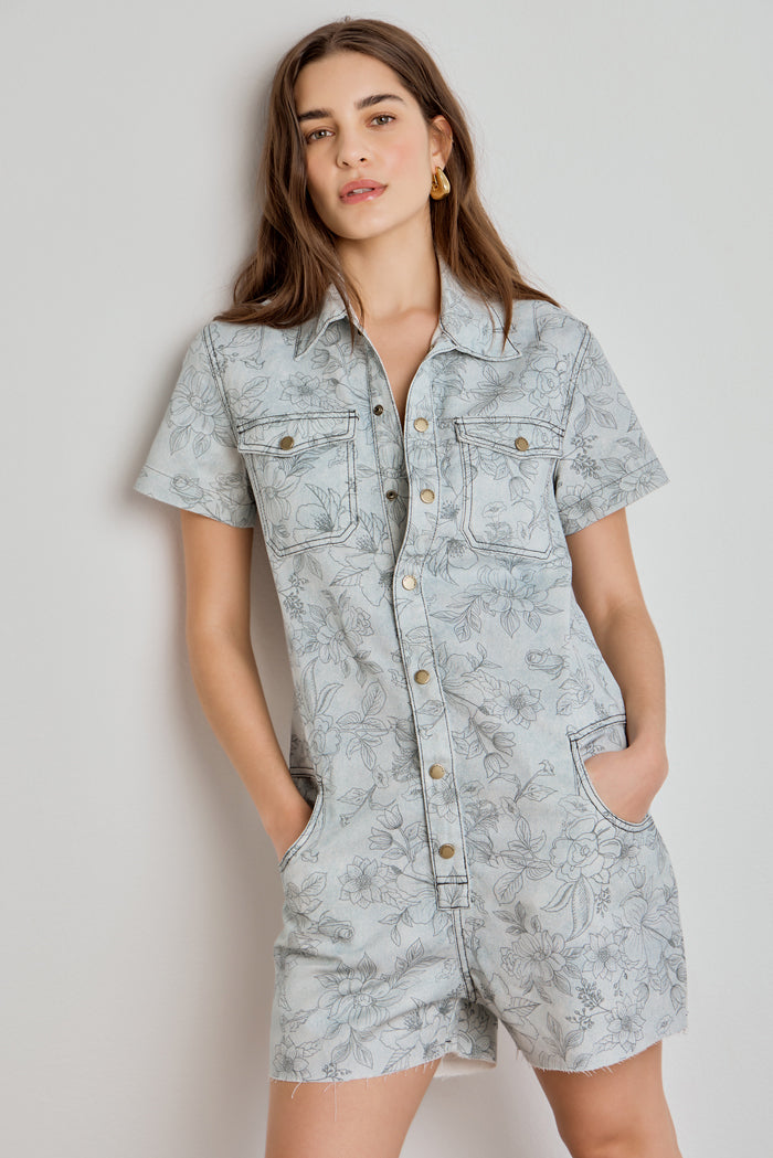 Macaquinho Feminino Estampado Sarja - Flower Sketch: Conforto e Estilo em Cada Detalhe