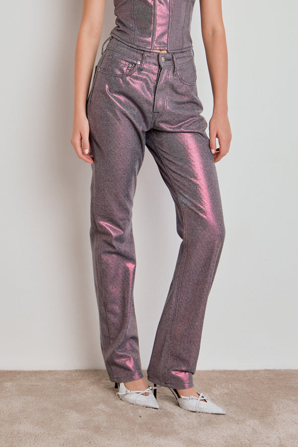 CALÇA FEMININA STRAIGHT FOIL JEANS - INDIGO/VINHO
