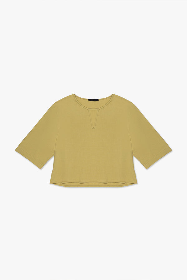BLUSA FEMININA MANGA CURTA DECOTE ROLETE - AREIA ESCURO