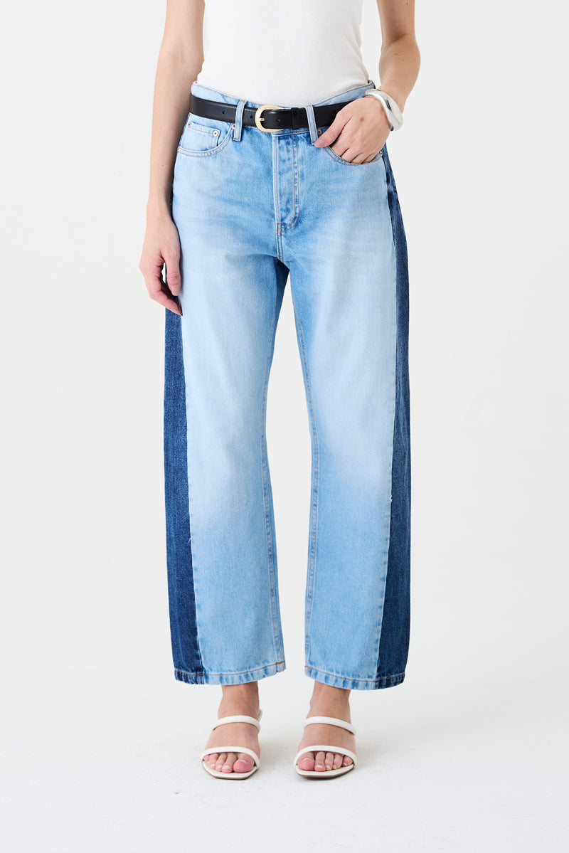 CALÇA MONICA FEMININA BARREL SLIM JEANS PATCH